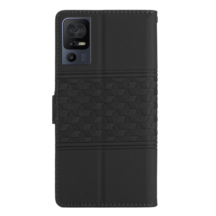 Funda para TCL 40 Se de Cuero con Relieve de Diamante y Cordón (Negro)