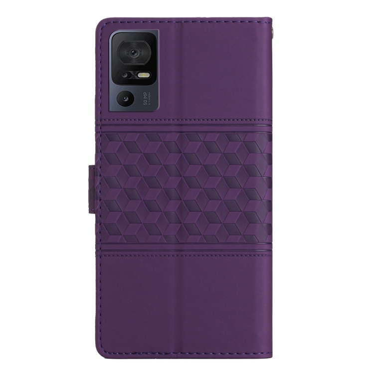 Estuche para TCL 40 SE de Cuero con Sensación de Piel en Relieve y Cordón (Púrpura)