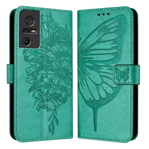 Funda de Cuero para TCL 40 Se con Mariposa en Relieve (Verde)
