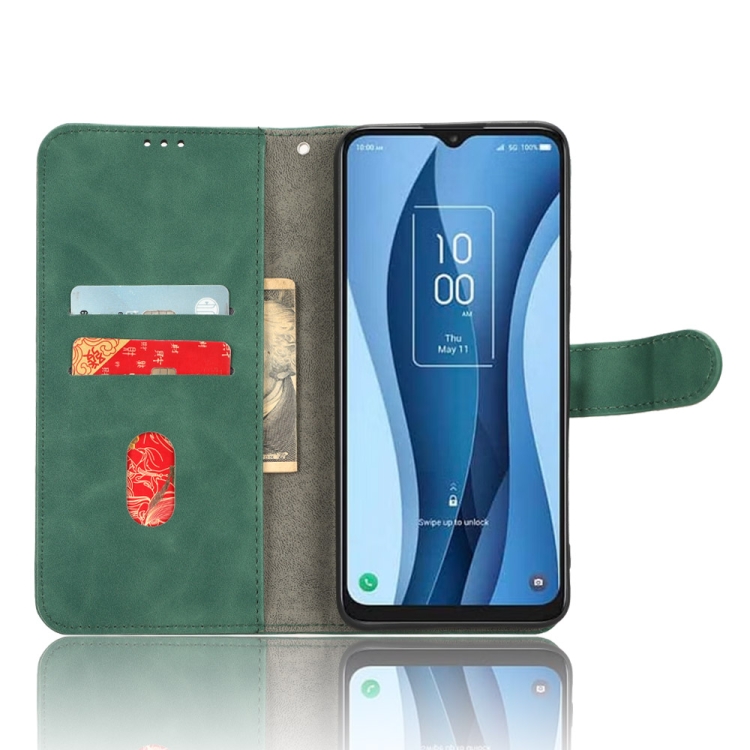 Funda de Cuero con Tapa Magnética para TCL 40 Xe 5G Skin Feel (Verde)