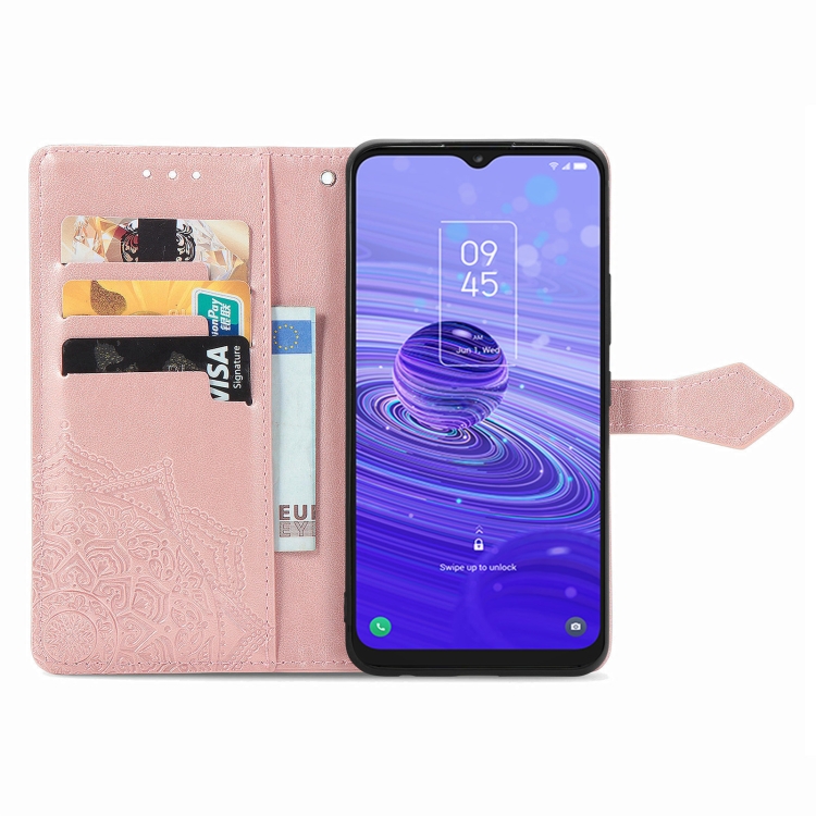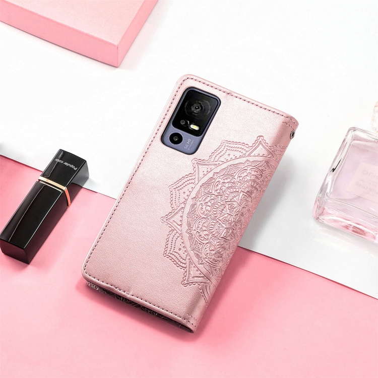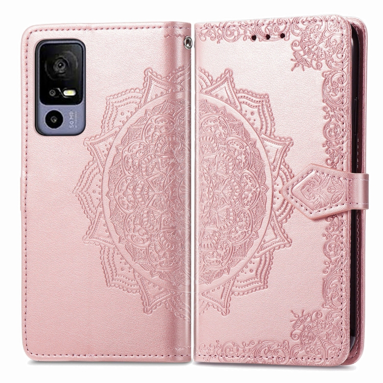 Funda de Cuero En Relieve para TCL 40R Mandala Flower (Oro Rosa)