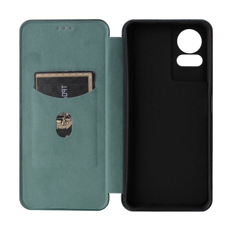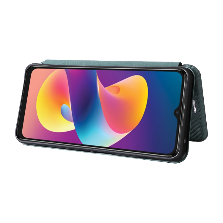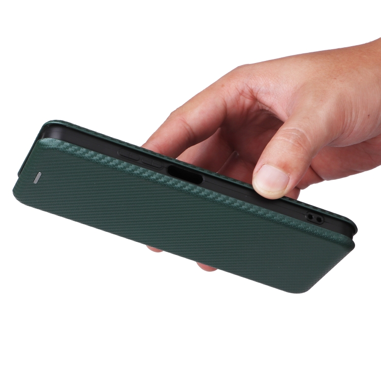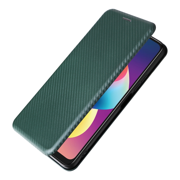 Funda de Cuero con Tapa para TCL 50 Le 5G con Textura de Fibra de Carbono (Verde)
