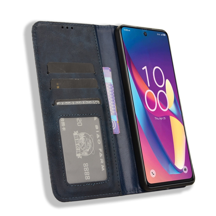 Funda para TCL 50 XL 5G Cuero Textura Retro con Hebilla Magnética (Azul)