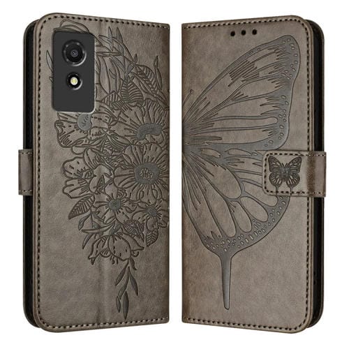 Funda de Cuero para TCL 501 con Mariposa en Relieve (Gris)
