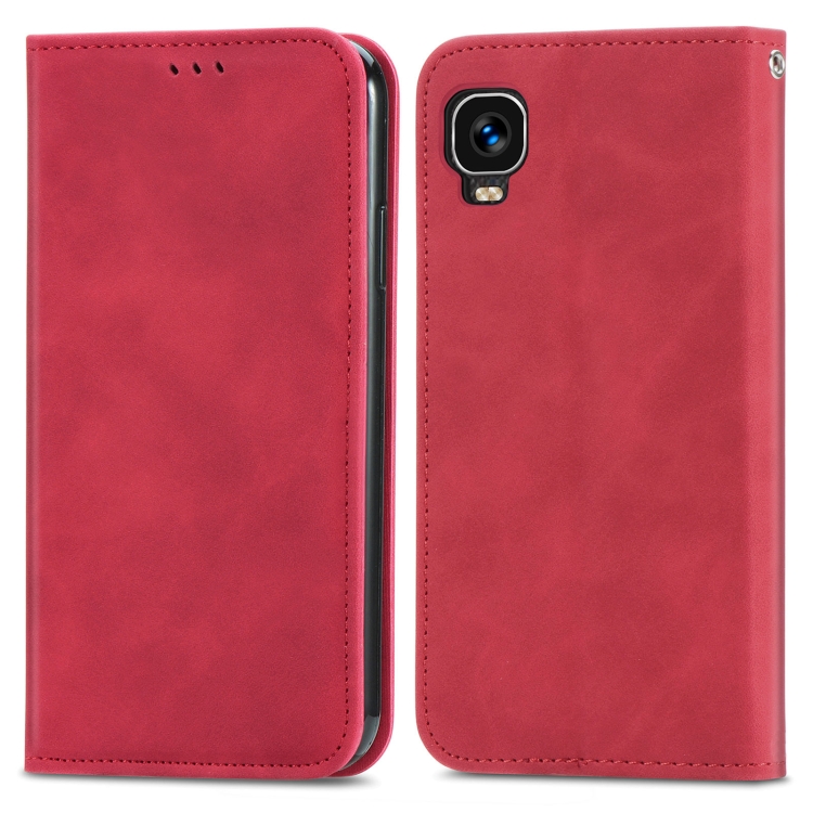 Funda para TCL A509Dl / A3 con Piel Retro Cuero Horizontal Magnética (Rojo)