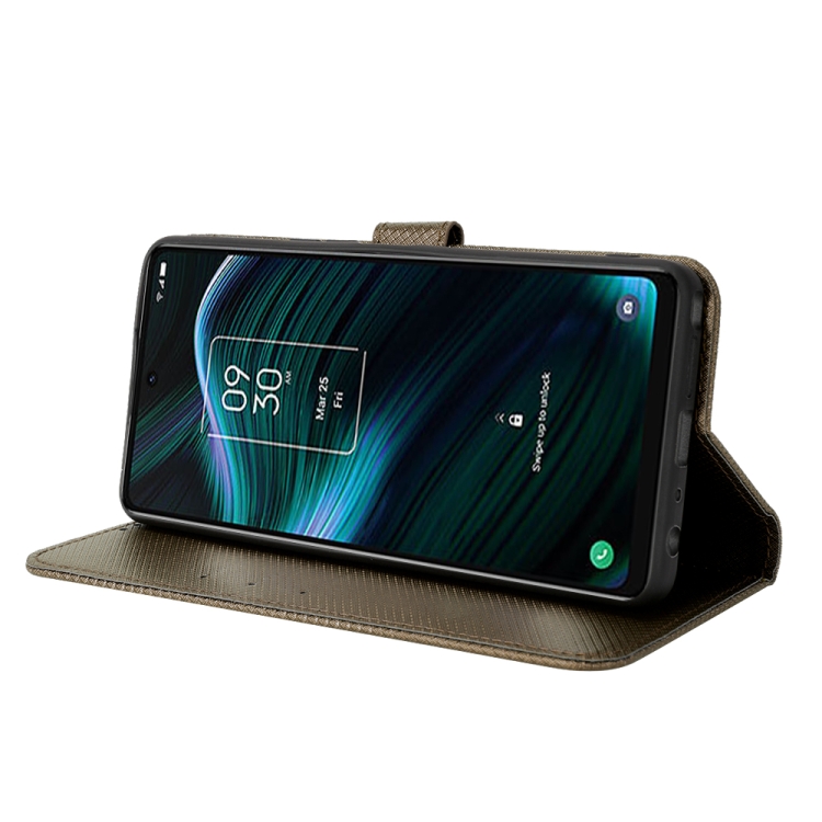 Funda para TCL Stylus 5G de Cuero con Textura de Diamante (Marrón)