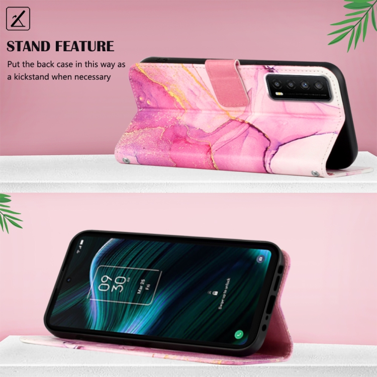 Funda para TCL Stylus 5G Pt003 con Tapa de Cuero y Patrón de Mármol (Rosa Púrpura Dorado)