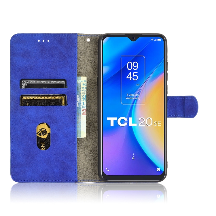 Funda de Cuero PU para TCL20 SE con Hebilla Magnética, Soporte, Tragamonedas y Billetera (Azul)