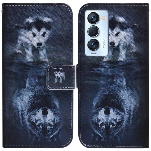 Funda para Tecno Camon 18 de Cuero con Dibujo Premier (Lobo y Perro)
