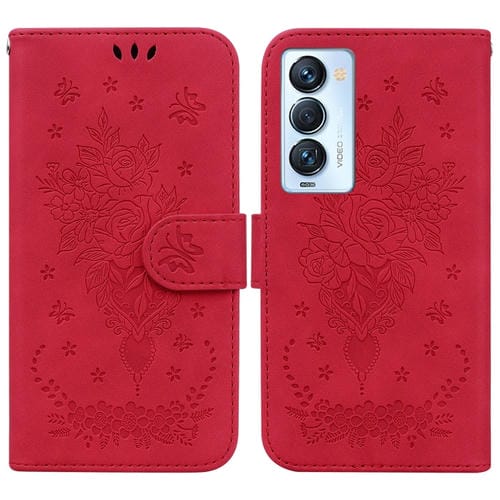 Funda para Tecno Camon 18 Gran Butterfly Rose Foothip en Cuero Relieve (Rojo)