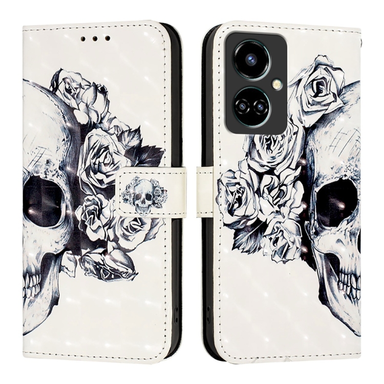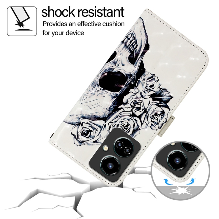 Funda de Cuero para Tecno Camon 19 con Tapa Horizontal y Pintura 3D (Calavera)