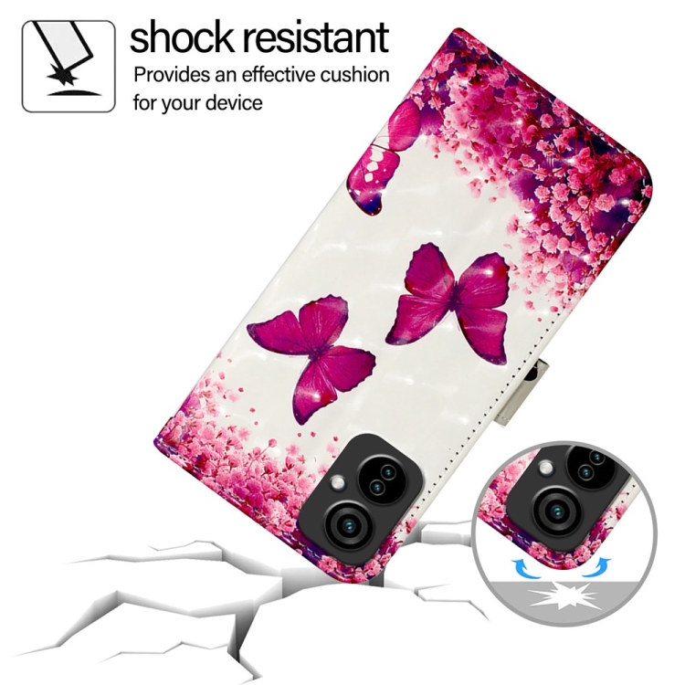 Funda para Tecno Camon 19 Neo de Cuero con Tapa Horizontal y Pintura 3D (Mariposa Rosa)