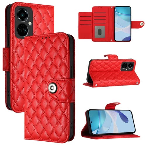 Funda de Cuero para Tecno Camon 19 Pro 5G con Tapa, Textura Romboidal y Cordón (Rojo)