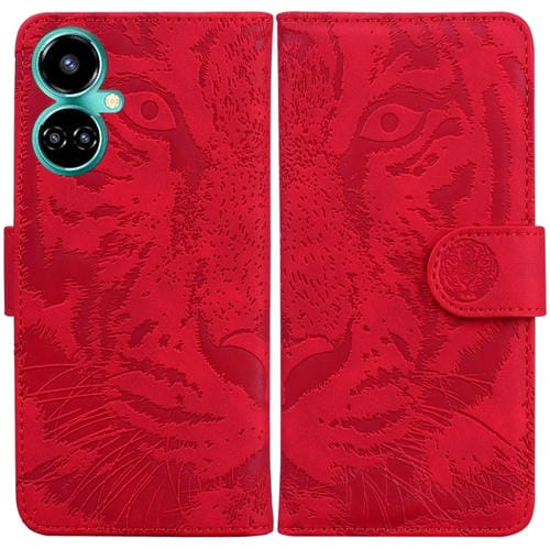 Funda de Cuero para Tecno Camon 19 Tiger con Tapa Horizontal y Patrón Embossing (Rojo)