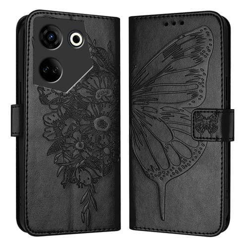 Funda de Cuero para Tecno Camon 20/20 Pro 4G con Mariposa en Relieve (Negro)