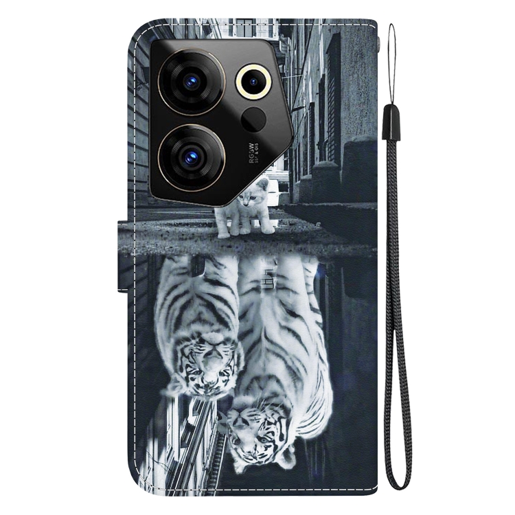 Funda de Cuero para Tecno Camon 20 Premier 5G con Dibujo Coloreado y Textura de Cristal (Reflejo de Tigre Gato)