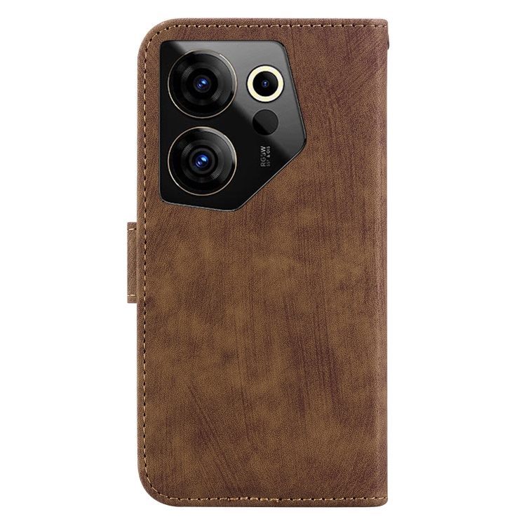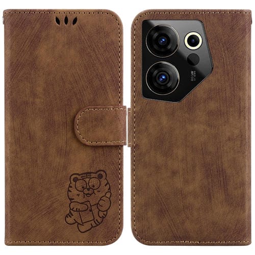 Funda de Cuero para Tecno Camon 20 Premier 5G Little Tiger en Relieve (Marrón)