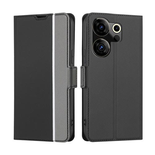 Funda de Cuero para Tecno Camon 20 Premier 5G con Textura Sarga y Botón Lateral (Negro)