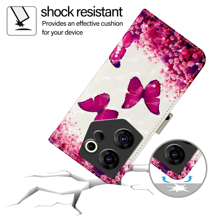 Funda para Tecno Camon 20 Premier Cuero con Tapa Horizontal y Pintura 3D (Mariposa Rosa)