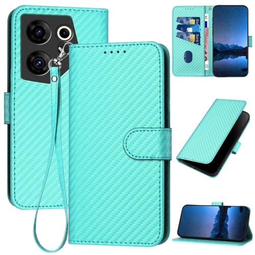 Funda de Cuero para Tecno Camon 20 Premier Yx0070 con Hebilla de Fibra de Carbono y Cordón (Azul Claro)