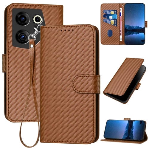 Funda de Cuero para Tecno Camon 20 Premier Yx0070 con Hebilla de Fibra de Carbono y Cordón (Café)