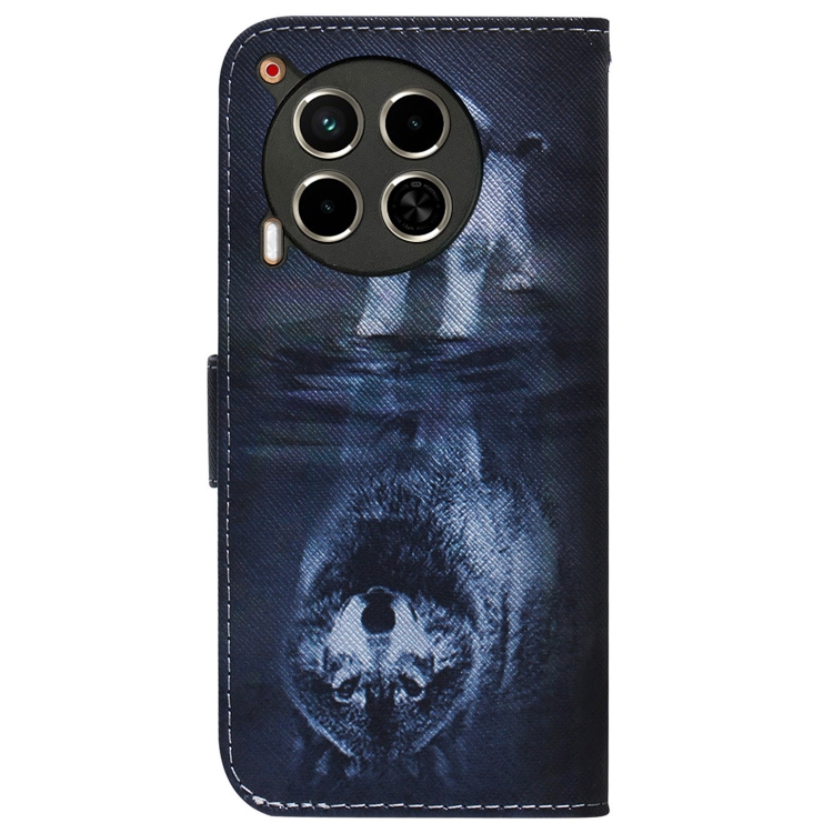 Funda de Cuero para Tecno Camon 30 4G / 30 5G Cl6 Cl7 con Tapa y Dibujo Coloreado (Lobo y Perro)