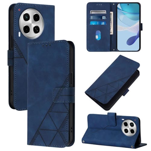 Funda de Cuero para Tecno Camon 30 4G / 5G Crossbody con Tapa En Relieve 3D (Azul)