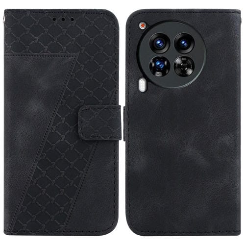 Funda de Cuero para Tecno Camon 30 Premier 5G con Relieve en Forma de Siete (Negro)