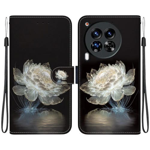 Funda de Cuero para Tecno Camon 30 Premier 5G con Dibujo Coloreado y Textura de Cristal (Peonía de Cristal)