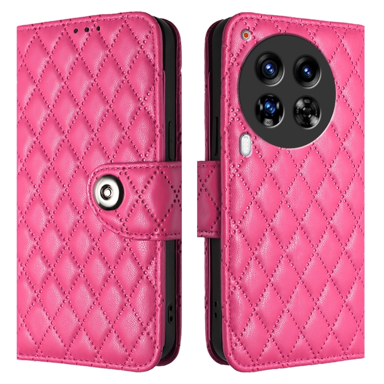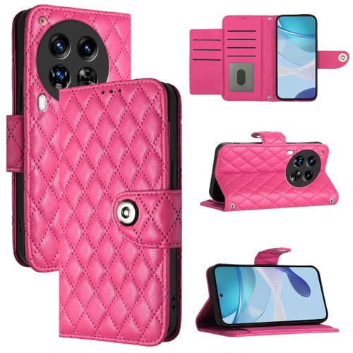 Funda para Tecno Camon 30 Premier 5G con Tapa de Cuero Textura Romboidal y Cordón (Rojo Rosa)
