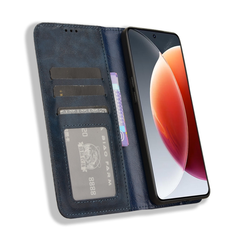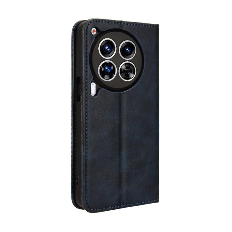 Funda para Tecno Camon 30 Premier 5G Cuero Textura Retro con Hebilla Magnética (Azul)