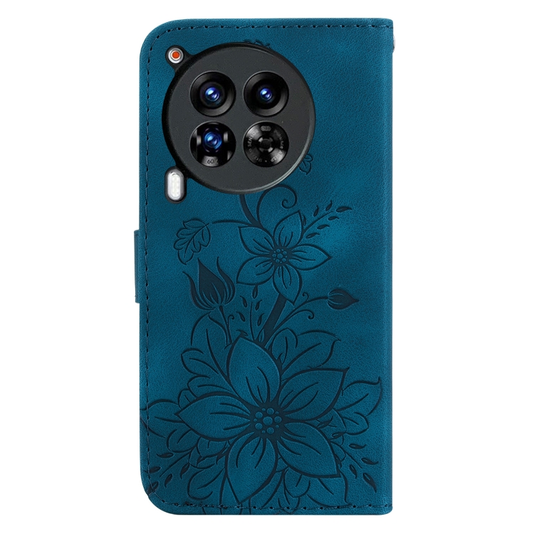 Funda de Cuero para Tecno Camon 30 Premier 5G Lily en Relieve (Azul Oscuro)