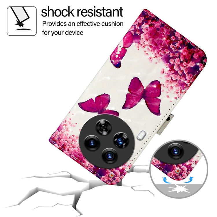 Funda para Tecno Camon 30 Premier de Cuero con Tapa Horizontal y Pintura 3D (Mariposa Rosa)