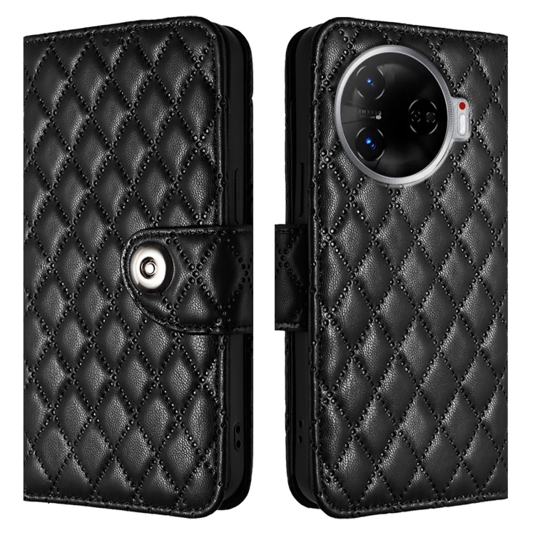 Funda para Tecno Camon 30 Pro 5G de Cuero con Tapa, Textura Romboidal y Cordón (Negro)