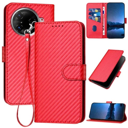 Funda de Cuero para Tecno Camon 30 Pro Yx0070 con Hebilla de Fibra de Carbono y Cordón (Rojo)