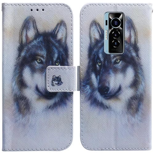 Funda para Tecno Fantástico X Caja de Cuero con Dibujo de Lobo Blanco (Blanco)