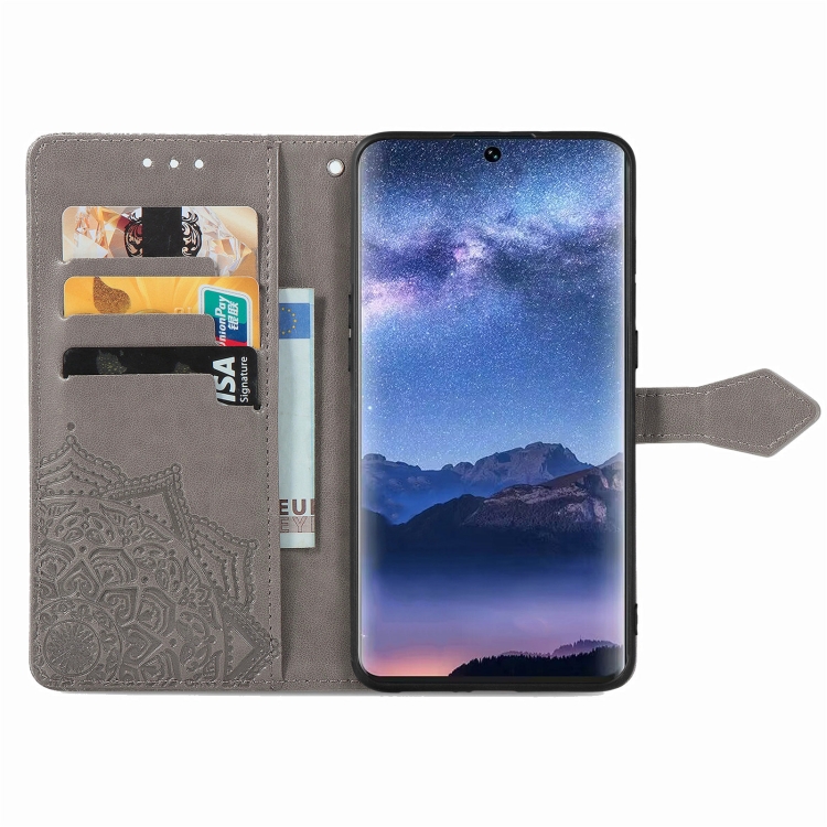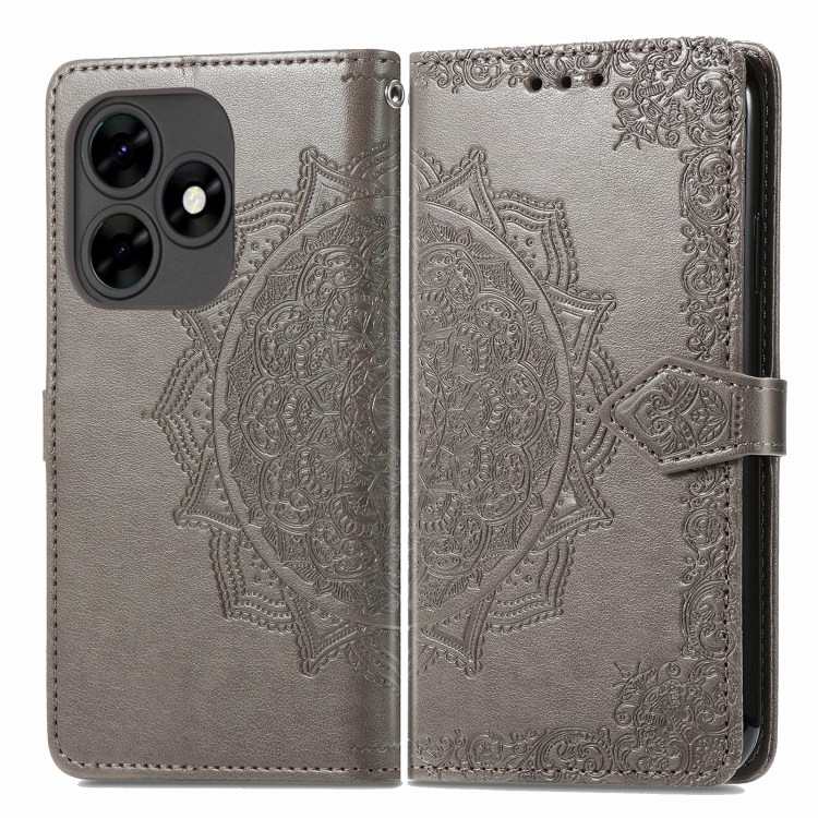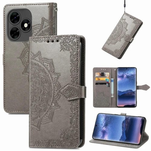 Funda para Tecno Itel S23 de Cuero con Relieve de Flor de Mandala (Gris)