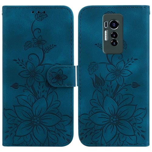 Funda de Cuero En Relieve para Teléfono Tecno Phantom X Lily (Azul Oscuro)