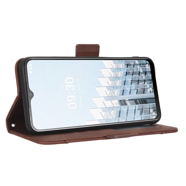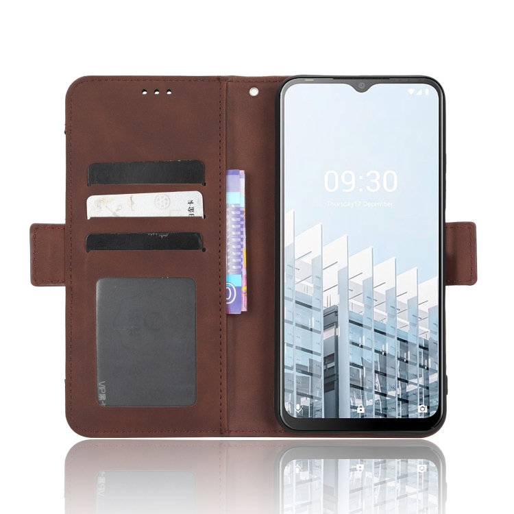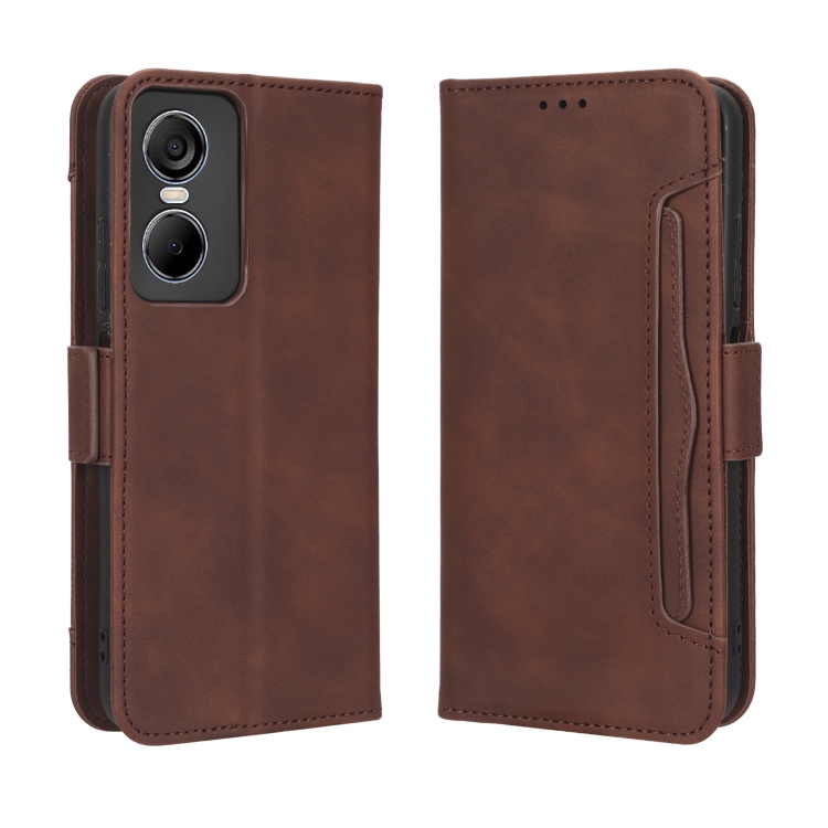 Funda de Cuero para Tecno Pop 6 Pro Be8 con Textura Becerro y Ranuras para Tarjetas (Marrón)