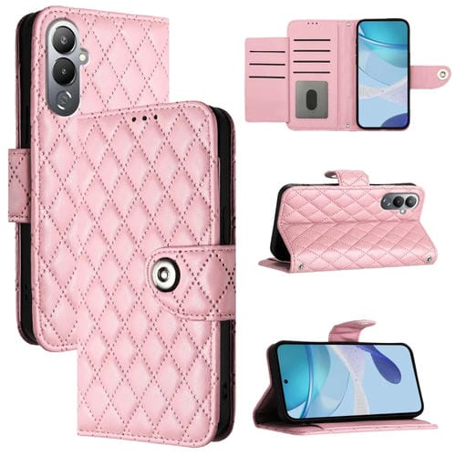 Funda de Cuero para Tecno Pova 4 con Tapa Textura Rombal y Cordón (Rosa)