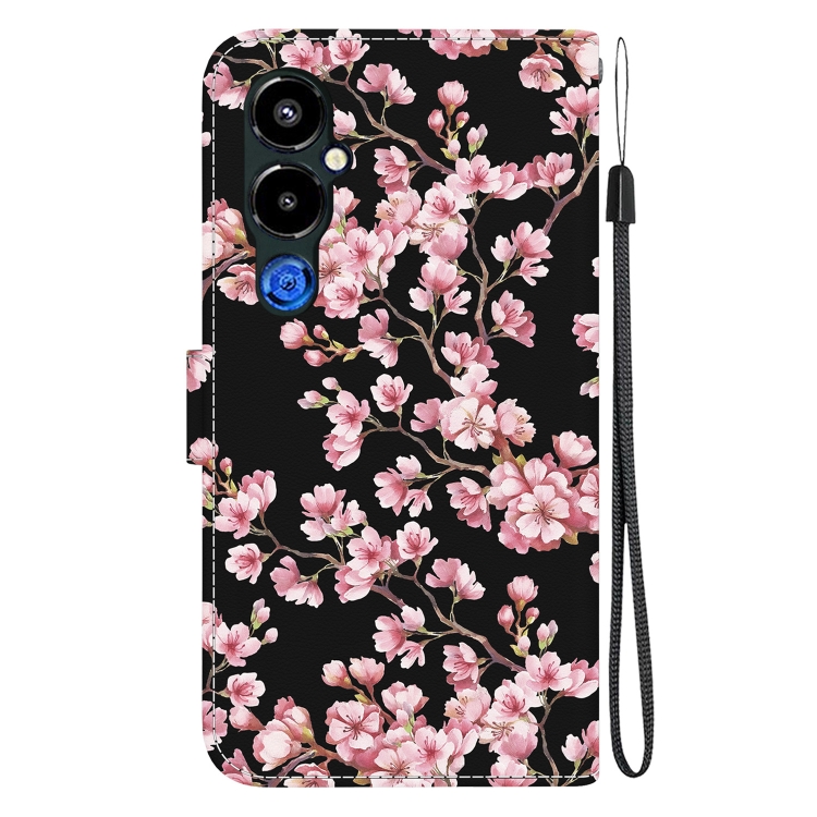 Funda de Cuero para Tecno Pova 4 Pro con Dibujo Coloreado y Textura de Cristal (Flor de Ciruelo)