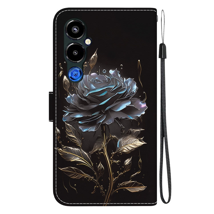 Funda de Cuero para Tecno Pova 4 Pro con Dibujo Coloreado y Textura de Cristal (Rosa Negra)
