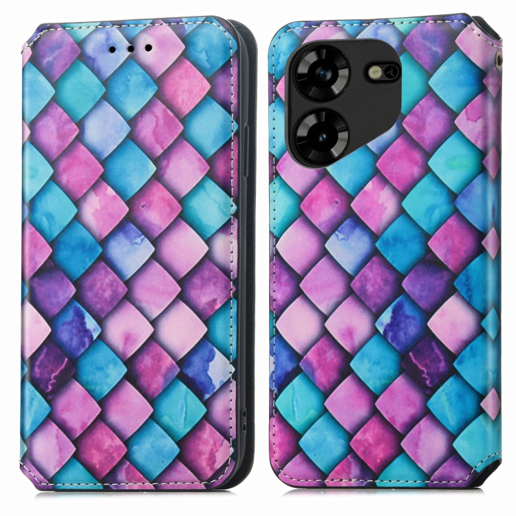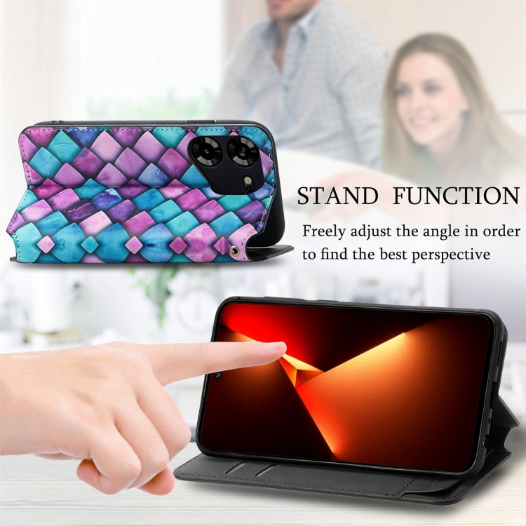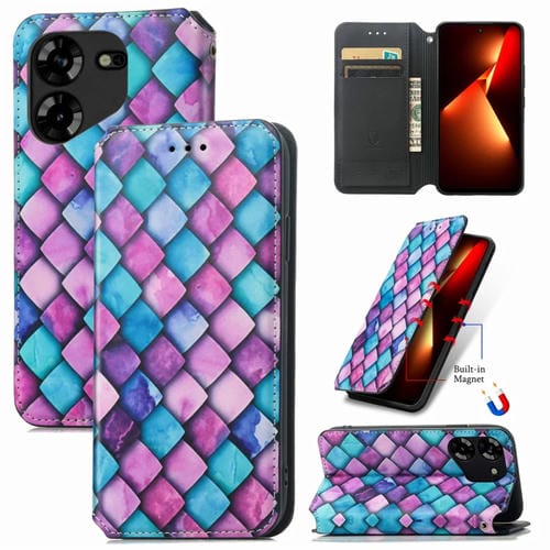 Funda de Cuero Magnética Caseneo para Tecno Pova 5 4G (Escamas Moradas)