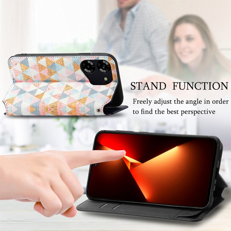 Funda de Cuero Magnética Caseneo para Tecno Pova 5 4G (Rombo)