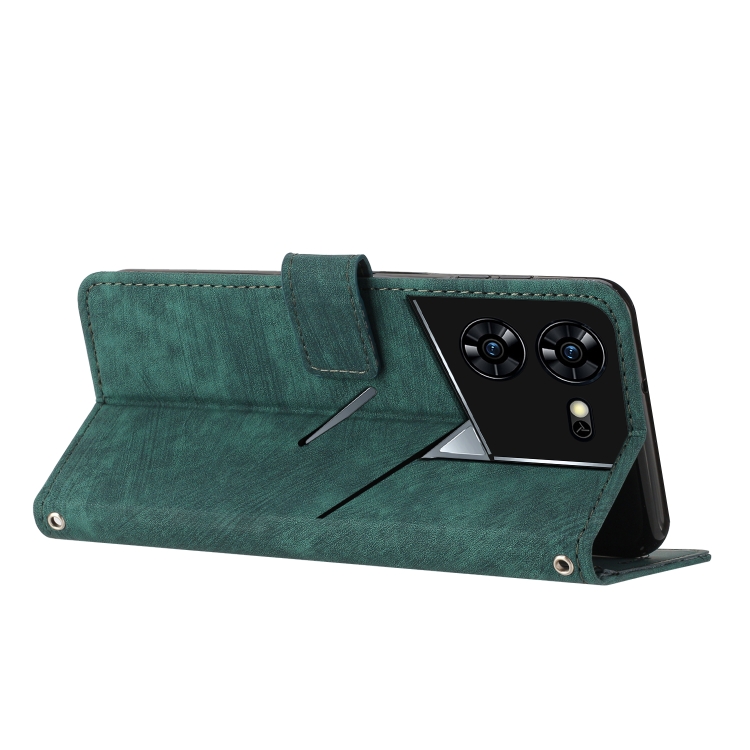 Funda de Cuero para Tecno Pova 5 Pro con Patrón de Rayas y Cordón Largo (Verde)