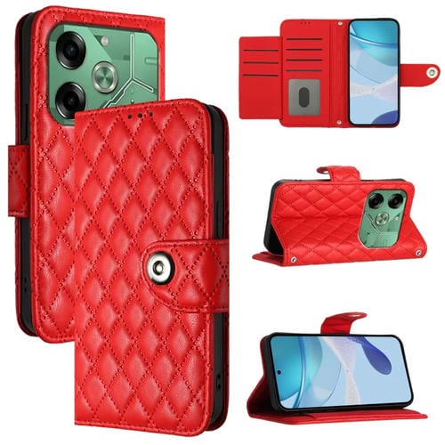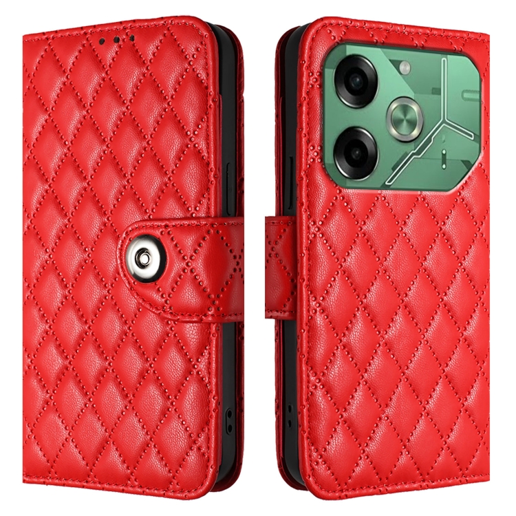 Funda de Cuero para Tecno Pova 6 4G con Tapa Textura Romboidal y Cordón (Rojo)