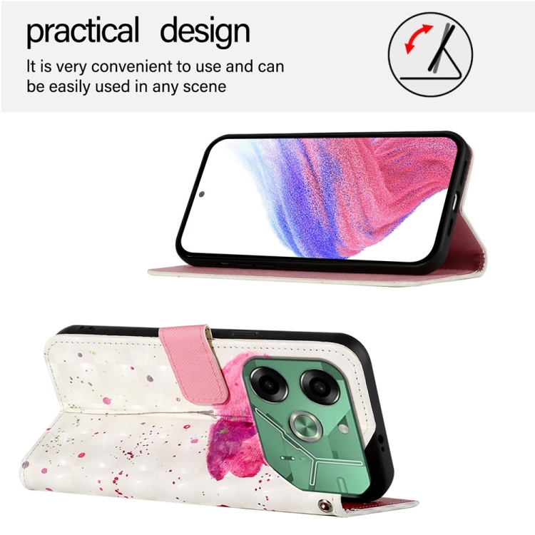 Funda de Cuero para Tecno Pova 6 4G con Tapa Horizontal y Pintura 3D (Flor)