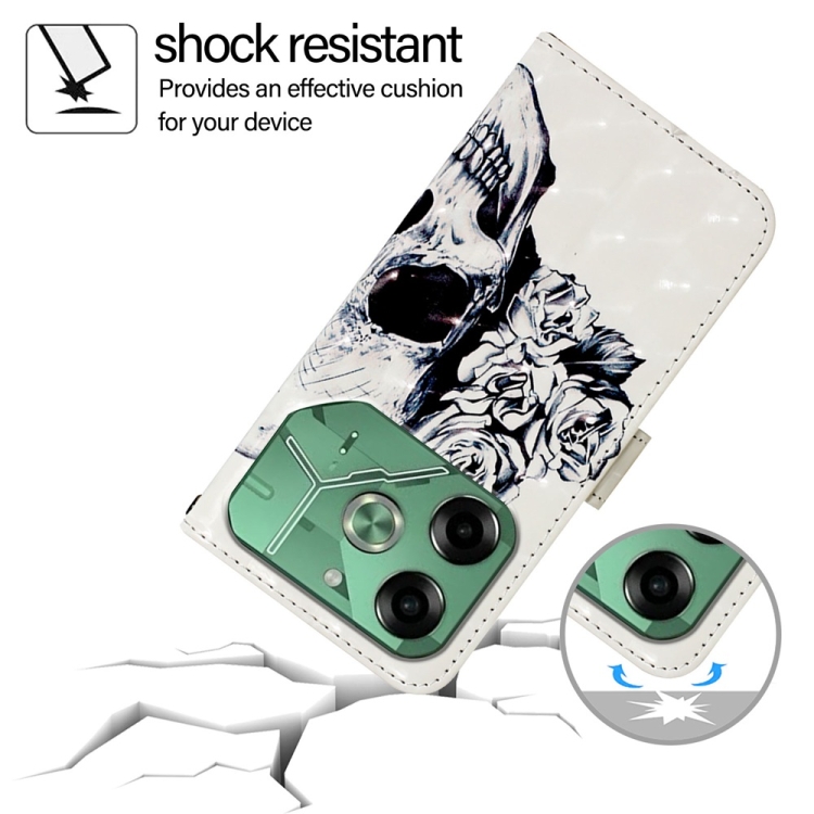 Funda de Cuero con Tapa Horizontal para Tecno Pova 6 4G Pintura 3D (Calavera)