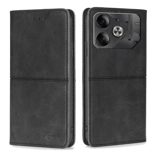 Funda de Teléfono Tecno Pova 6 5G Cuero Magnético Textura de Vaca (Negro)