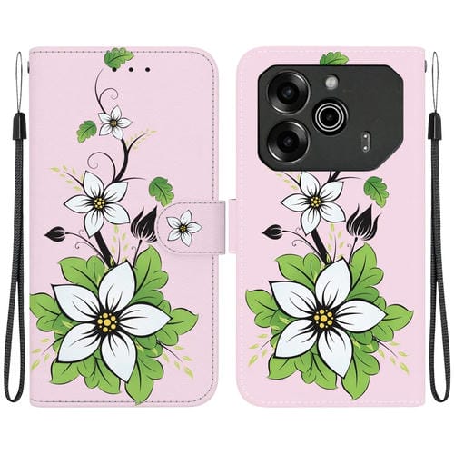 Funda de Cuero para Tecno Pova 6 Pro y Pova 6 con Dibujo Coloreado y Textura de Cristal (Lily)